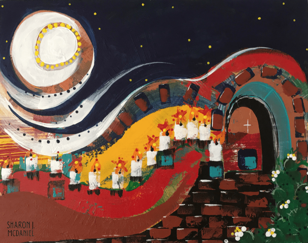 I began painting with passion during my high school art classes, and in my parent’s garage. Traditional stretched canvas and panels were my go to surface until, in my mid 60’s, I discovered my first “Tarahumara” crafted, primitive drum. (Click on “Tarahumara” to learn more about the people of the Copper Canyon.)